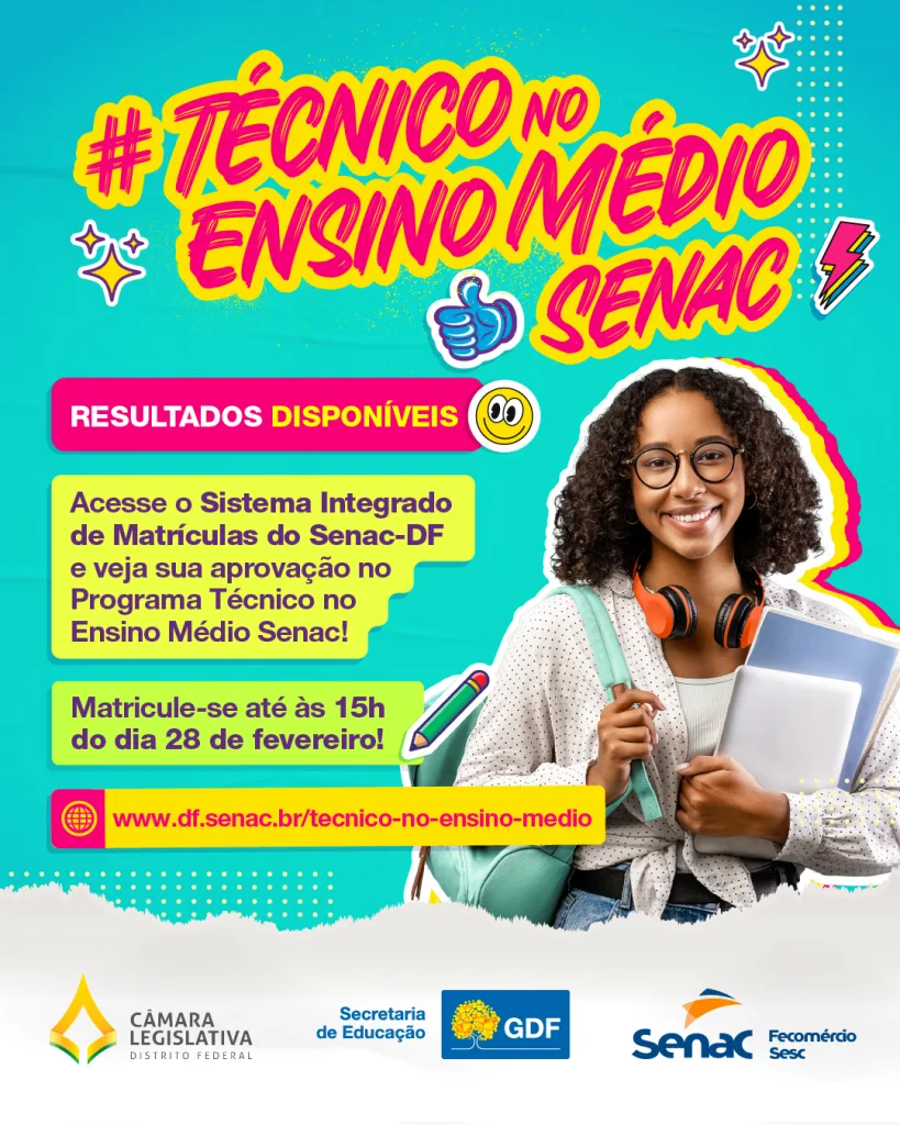 Os candidatos que participaram do processo seletivo do Senac-DF para o programa Técnico no Ensino Médio já podem conferir o resultado. A lista está disponível no Sistema Integrado de Matrículas da instituição e os aprovados devem ficar atentos ao prazo para efetivar a matrícula, que vai até às 15h, desta sexta-feira (28). A segunda chamada […]