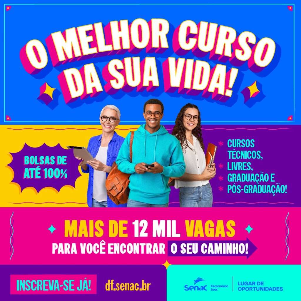 A partir desta segunda-feira (18), o Senac-DF inicia as inscrições para mais de 12 mil vagas em cursos técnicos, livres, de graduação e pós-graduação. A grande novidade desta edição é a oferta de bolsas de até 100% e descontos de 25% para quem quiser garantir a aquisição do curso de imediato, uma excelente oportunidade de […]
