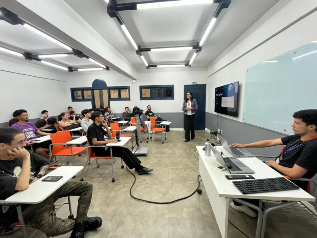 Enquanto isso, no polo da Faculdade Senac-DF em Taguatinga, os estudantes participaram do workshop “Criando seu primeiro agente de inteligência artificial”, conduzido pela professora Jenifer Teles. A atividade apresentou conceitos fundamentais de IA e proporcionou aos alunos a experiência prática de desenvolver seu próprio agente inteligente, em um momento marcado pela inovação e aplicação imediata do conhecimento.